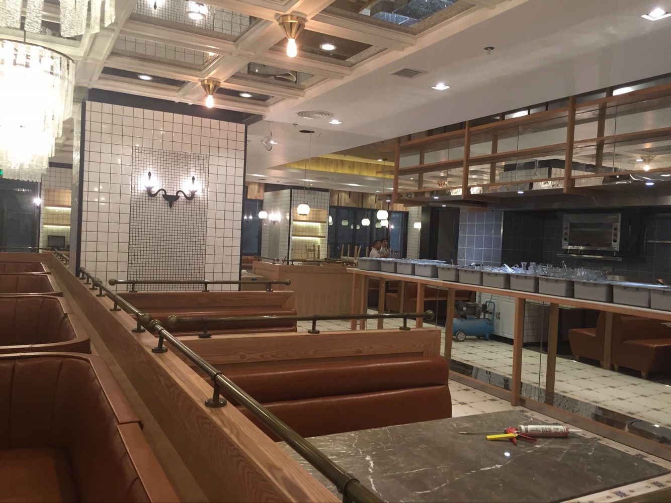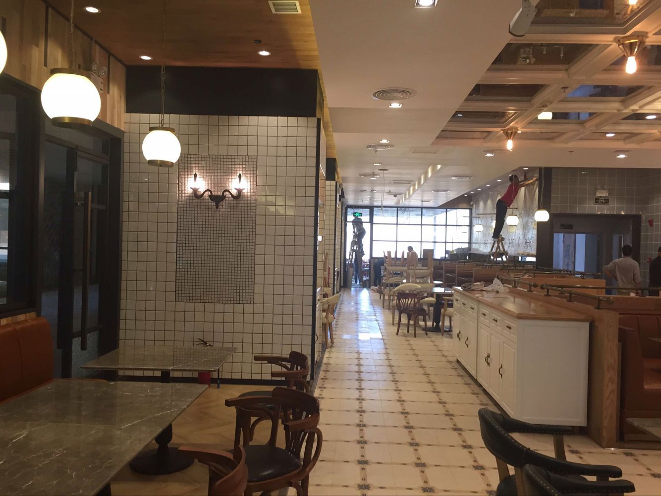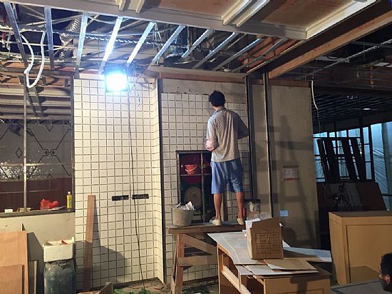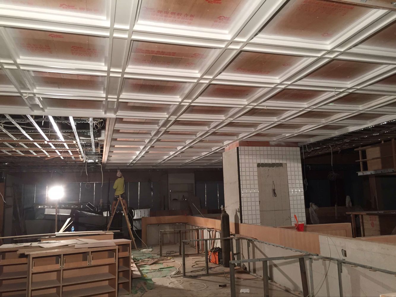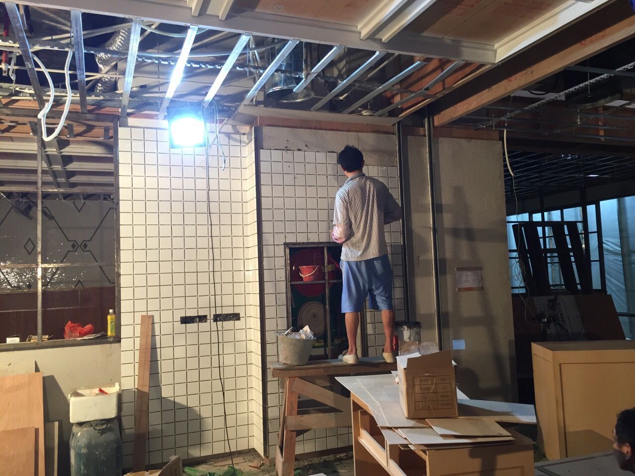 以上是餐廳完工效果實景照片,下面來看看我們施工師傅的施工過程——